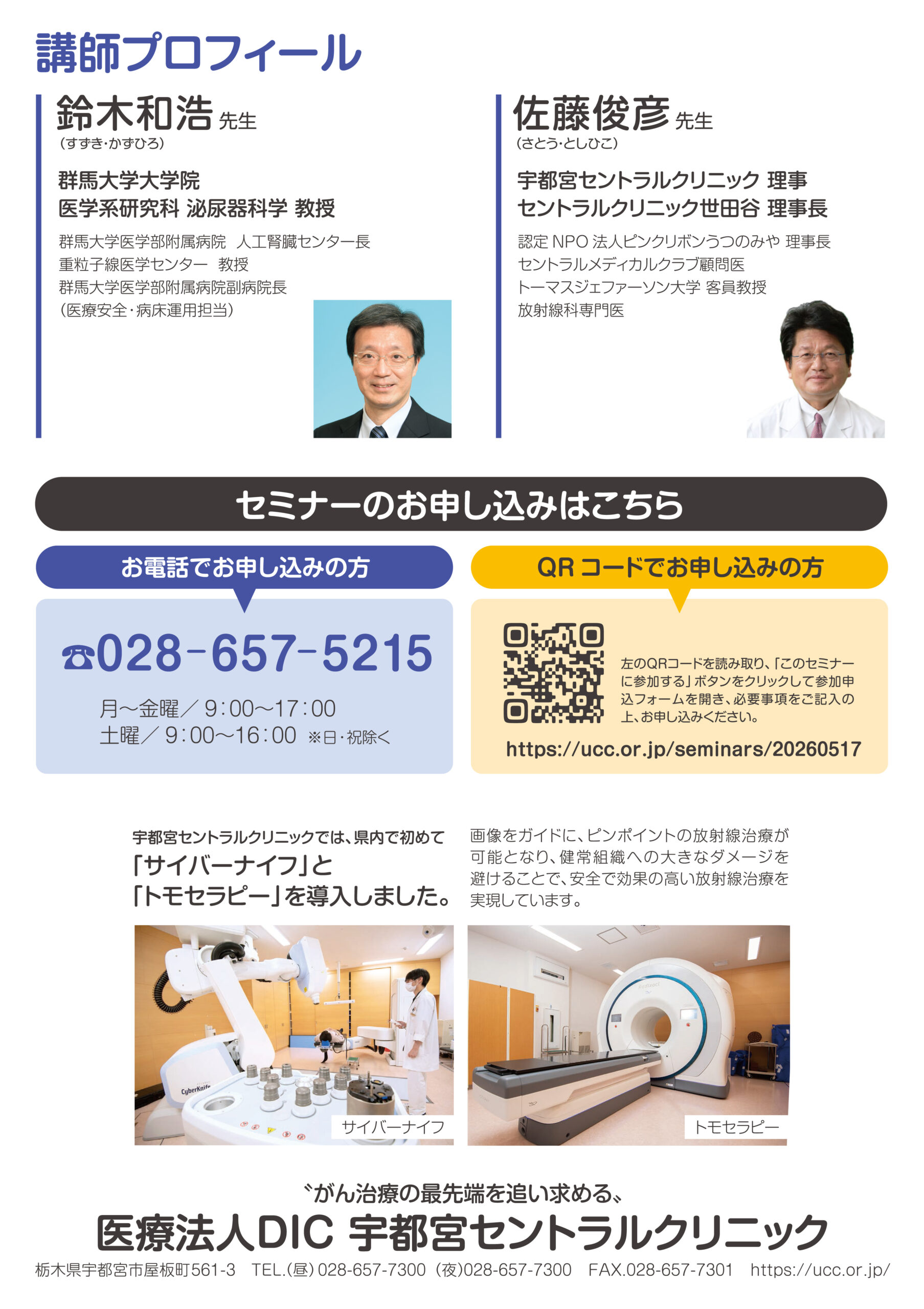 講師は、群馬大学大学院医学系研究科 泌尿器科学 教授 鈴木 和浩 先生をお迎えし、宇都宮セントラルクリニック理事佐藤俊彦先生との