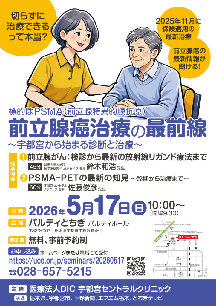 【来場型セミナー】前立腺癌治療の最前線 ~宇都宮から始まる診断と治療~